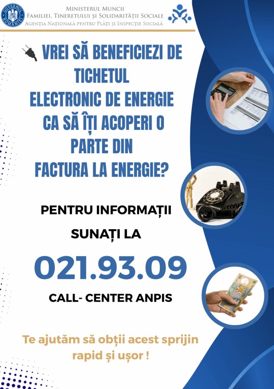 Tichetul electronic de energie are valoare de 50 lei/ luna si poate fi folosit exclusiv pentru plata facturilor la energia elecrică și se acordă pentru perioada 1 iulie 2025 – 31 martie 2026.