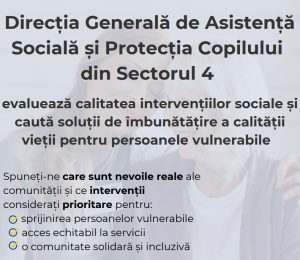 Începând cu data de 30.09.2024, Direcţia Generală de Asistenţă Socială şi Protecţia Copilului Sector 4 informează cetăţenii Sectorului 4, că pot depune…